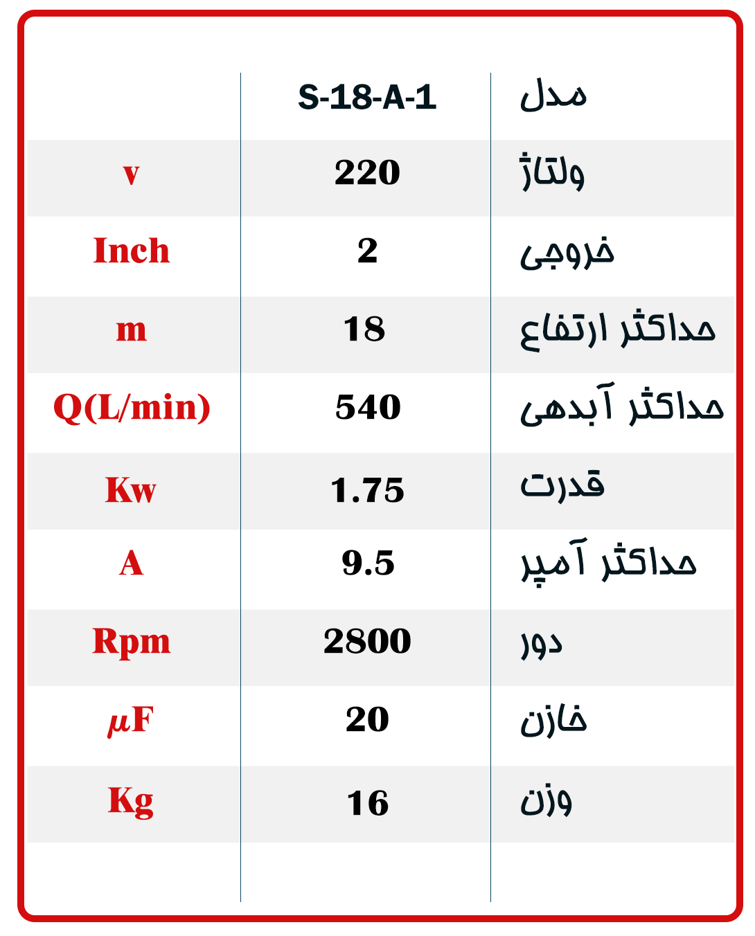⇐ پمپ های کفکش اسپیکو مدل S18-A با 2800 دور در دقیقه و ولتاژ تکفاز (10% ±220) با دهانه خروجی 2 اینچ برای انتقال آبهای سطحی، آب باران، تخلیه استخرها، آبهای گلآلود و کثیف حاوی مواد ریز غیر ساینده طراحی شده است.
